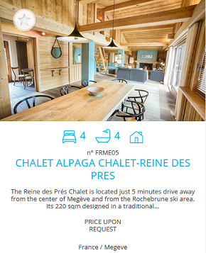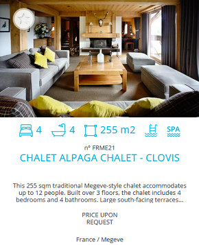 The sales for Alpaga***** Megève All Chalets: From Sunday 29th of December to Friday 3rd of January 2025 included. If you have any booking for this period, please send us a request as soon as possible. or call by phone +370 5 277 8497 |