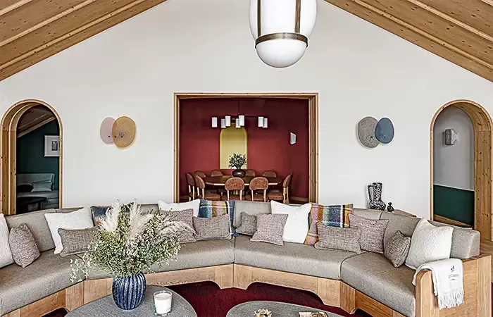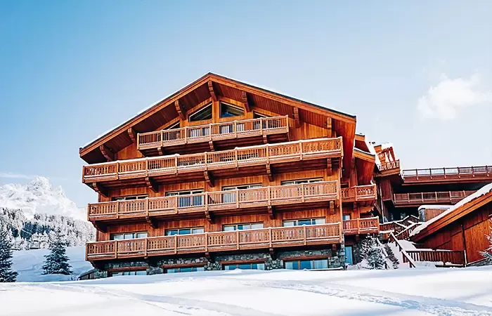 Close to Le Rond-Point des Pistes, Le Coucou is in one of the loveliest sites in Méribel, next to the slopes for a rare ski-in/ski-out experience in Méribel. The hotel rubs shoulders with the snow-capped summits and overlooks the entire valley. With the elegant look of a traditional chalet, Le Coucou sits on ten floors, snuggled on the mountainside, blending in perfectly with its environment. The finest hideaway in Méribel for Le Coucou. From top to bottom, on the mountainside and on the valley side, there are majestic peaks as far as the eye can see, and magical points of view where nothing disturbs the beauty and nature. Inside, Pierre Yovanovitch has made each opening into a breathtaking panoramic picture.