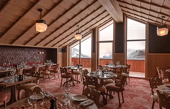 With a vast sunlit terrace overlooking the valley and the slopes, the Beefbar by Riccardo Giraudi welcomes meat lovers for lunch and dinner. Rare and prestigious meats (Black Angus from Argentina and the USA, Australian Wagyu, Japanese Kobe) matured and prepared to perfection. Specialities for sharing, sizzling dishes served in cast iron dishes. Impossible to resist the impressive dessert buffet.