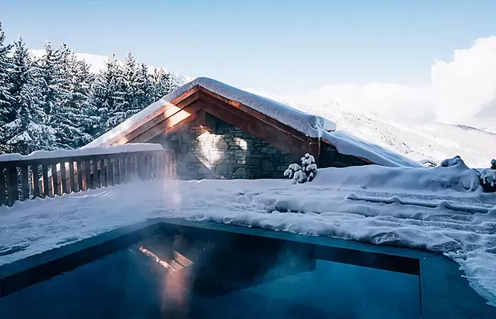 Practical and comfortable, the ski room in each chalet means that guests can easily get ready and head straight out onto the pistes without wasting time in the morning. After skiing, or if it is snowing, guests can take refuge in the private basement swimming pool. Each chalet also has its own private massage room. Butler, Chambermaid, Cooking chef, Courtesy Limousine Service, Indoor Pool, Steam room, Spa Treatment room, Private Skiroom, Private access to the slopes, Direct access to the hotel, TV room, Wifi, View over the Meribel Valley, Extra bed and baby cot available on demand, Access to all the hotel’s services.